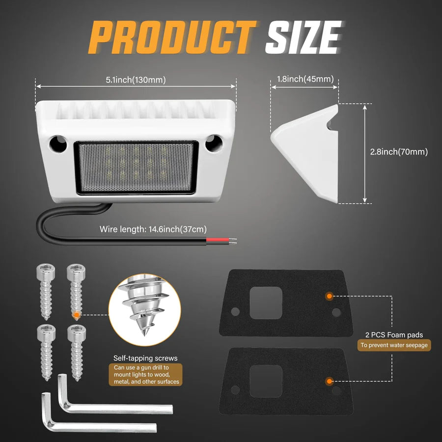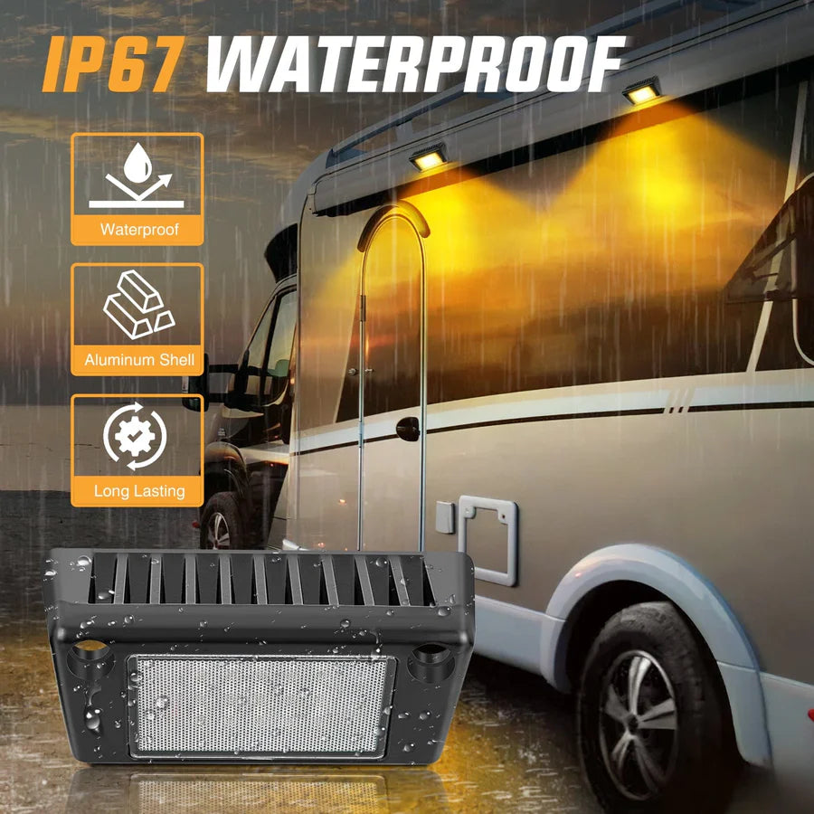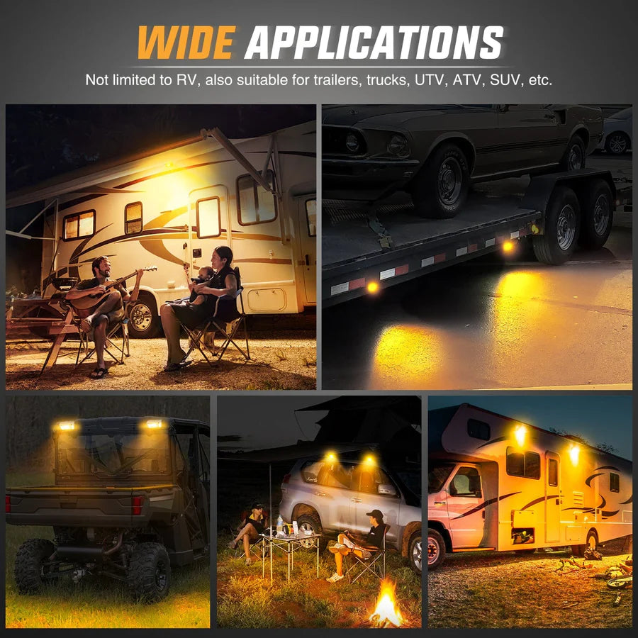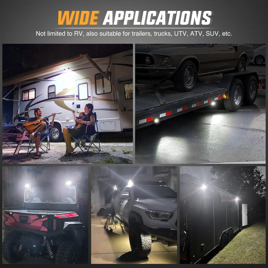 The Nilight 5-inch Down Lights offer versatile applications, fitting all 12V and 24V vehicles, including RVs, campers, and travel trailers. They are also well-suited for toy haulers, tractor-trailers, cabinets, motorhomes, marine boats, SUV roof racks, and even fire trucks. Additionally, these lights can be mounted on the undercarriage of vehicles and used as RV exterior lights, porch lights, food truck lights, roof rack lights, LED scene lights, and cargo trailer lights, providing reliable illumination for a wide range of needs.