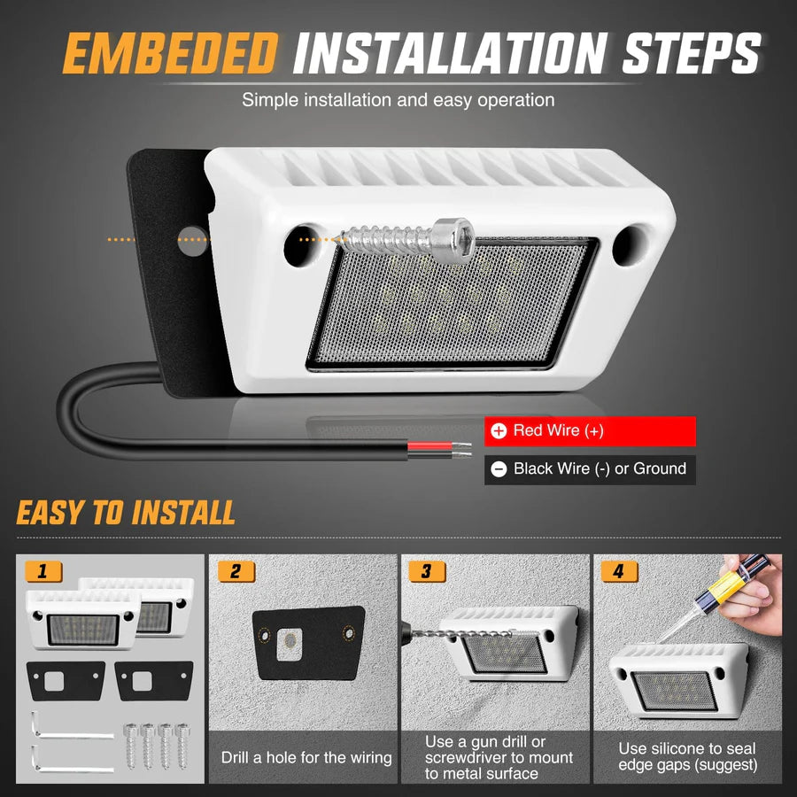 Designed for durability, these lights feature an IP67 waterproof rating and a die-cast aluminum alloy shell, making them waterproof, dustproof, rustproof, and shockproof. The quick-cooling alloy heat sinks help extend the lifespan of the lights, ensuring they can withstand various weather conditions and are ideal for outdoor use.