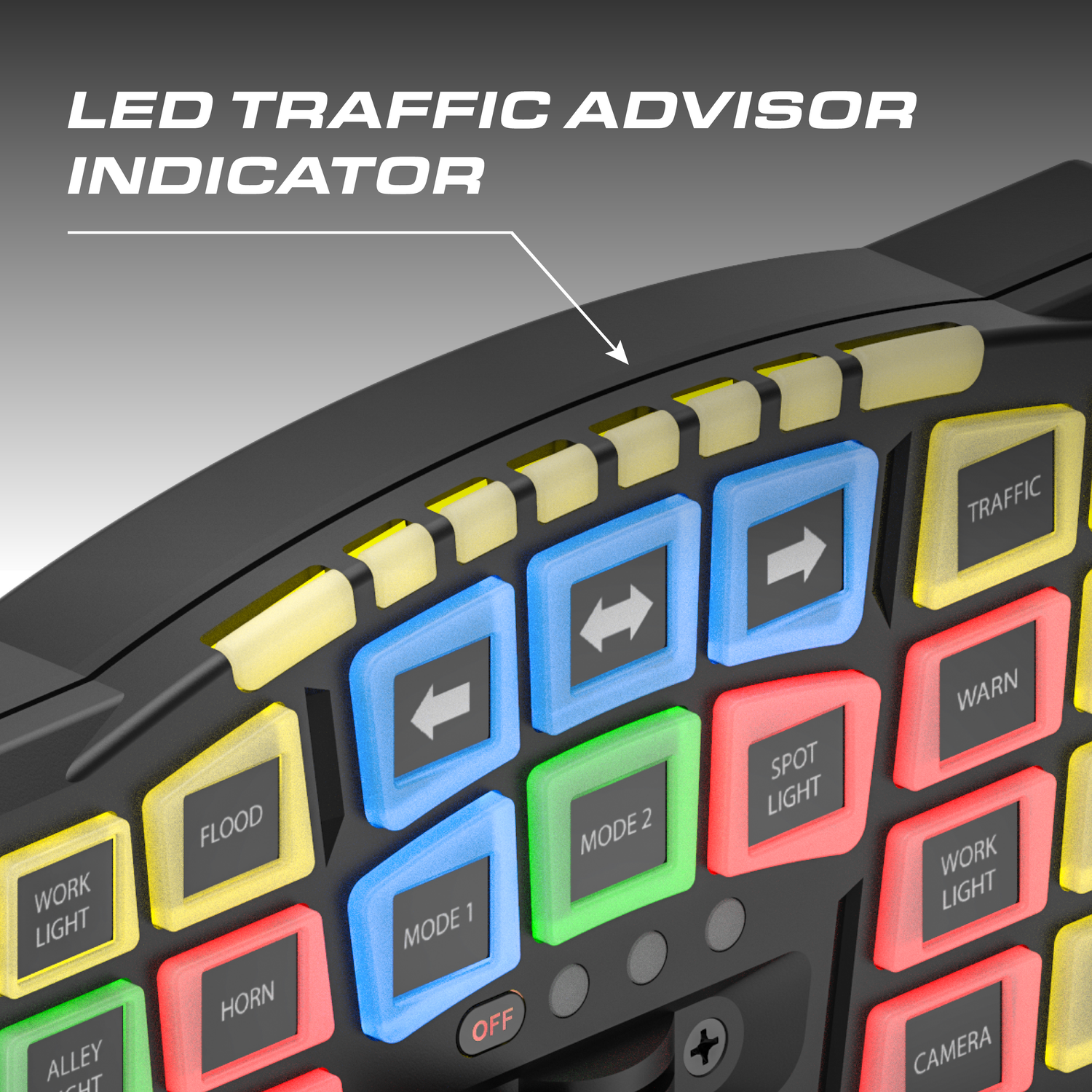 The Feniex SynQ-S Controller is a full-size vehicle control system designed for operators who demand fast, reliable access to critical lighting, siren, and auxiliary functions. Equipped with 22 backlit push buttons and an integrated slide switch, the Feniex SynQ-S Controller delivers intuitive, at-a-glance control with five selectable button colors for quick mode recognition in high-stress environments.